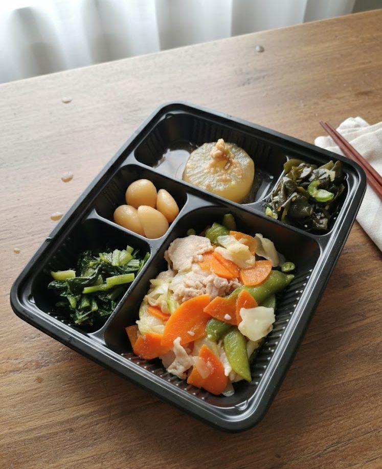 高齢者・配食向け調理済メニュー 日々の食事を通じて、安心と見守りを届ける配食向けメニューです。高齢者の方が無理なく・安全に・継続して食べられることを重視した設計で、塩分に配慮し、だしの旨味を活かした味付けを基本としています。 彩りメニュー(5品構成) 【特徴】・和洋中を取り入れた構成・たんぱく質・栄養バランスを意識・見た目にも配慮した彩りのある献立・塩分を抑え、だしで味を整えた味付け 日和メニュー(4品構成) 【特徴】・和食中心の献立構成・主菜+副菜の4品構成・食べやすさ・噛みやすさへの配慮・だしを活かしたやさしい味付け・塩分・栄養バランスに配慮した設計 高齢者配食としての配慮 ・濃い味付けに頼らない調理設計・無理なく完食しやすい分量・食材の大きさ・切り方への配慮・飽きにくい献立構成・継続利用を前提とした味設計 見守り配食としての取り組み 配食を単なる食事提供にとどめず、日常的な安否確認の一端を担う仕組みとして位置づけています。 ・原則、手渡しによる配達・配達時の声かけ・様子確認・異変時の速やかな連絡体制 無料試食について ご利用前に、食事内容をご確認いただくため、初回1食分の無料試食(配達対応)にも対応しております。 ※安心してご利用開始いただくための確認機会として実施しています。 お問い合わせ・ご相談はこちら ここをクリック